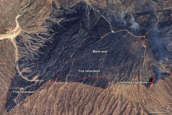 The satellite images above show the Bush Fire burn scar and some active fire fronts as they appeared on June 14, 2020.