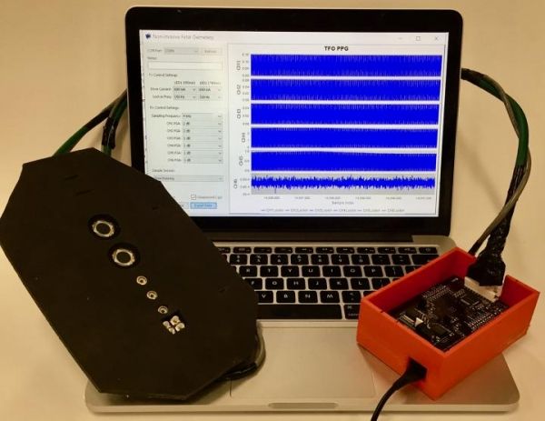 Image: Prototype of the external fetal oxygen monitor developed by engineers at UC Davis. The device uses light to directly measure fetal oxygen saturation. Existing monitors used in the delivery room infer fetal oxygen by measuring fetal heart rate and contractions, and have a high false positive rate leading to many Cesarean sections. The new device has so far been successfully tested in sheep. (Credit: Daniel Fong, UC Davis)