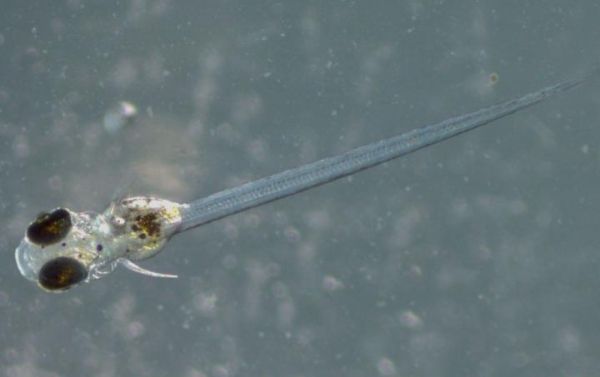 An inland silverside fish three days after hatching from the egg. (Photo Credit: Nathan Burns)