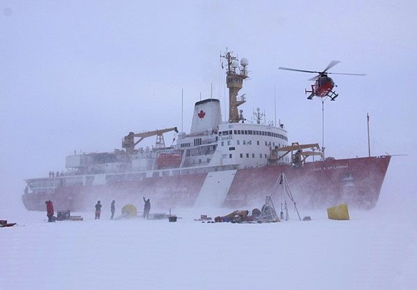Image: Crew members deploy equipment onto the ice from a Canadian icebreaker, CCGS Louis S. St. Laurent, in the Arctic Ocean. (Photo by Gary Morgan, Canadian Coast Guard)