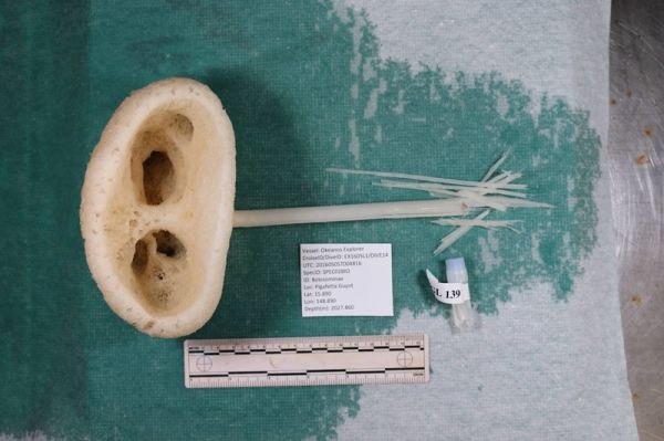 This new sponge was sampled and seen during missions in the Pacific on NOAA Ship Okeanos Explorer.