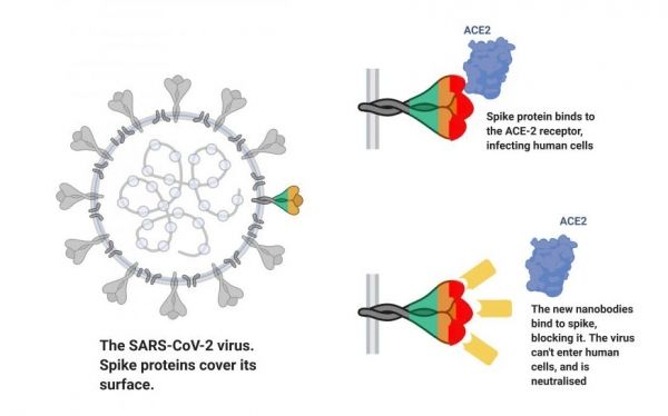 Llamas, camels and alpacas naturally produce quantities of small antibodies with a simpler structure, that can be turned into nanobodies. The team engineered their new nanobodies using a collection of antibodies taken from llama blood cells. They have shown that the nanobodies bind tightly to the spike protein of the SARS-CoV-2 virus, blocking it from entering human cells and stopping infection.