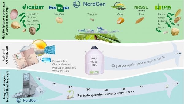 Therefore, a new seed longevity experiment has started in the Global Seed Vault. The experiment comprises seeds of 13 globally important crops, produced by project partners from all over the world, including Leibniz Institute of Plant Genetics and Crop Plant Research (IPK), and is planned to go on for a hundred of years from now on.