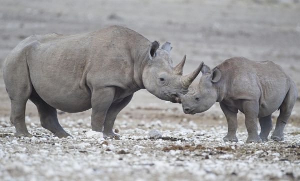 A black rhino and its calf; new technology that uses software to read unique features of rhino footprints will help protect this endangered species from poachers. (Photo Credit: WildTrack)