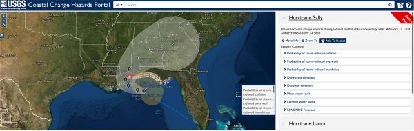 A new U.S. Geological Survey coastal change forecast predicts a decrease in impacts due to Hurricane Sally. However, some sandy beaches in Mississippi may still be heavily damaged by Hurricane Sally, while beaches in Louisiana, Alabama and Florida may see moderate to minor damage. The most current version is always available on the USGS Coastal Change Hazards Portal.