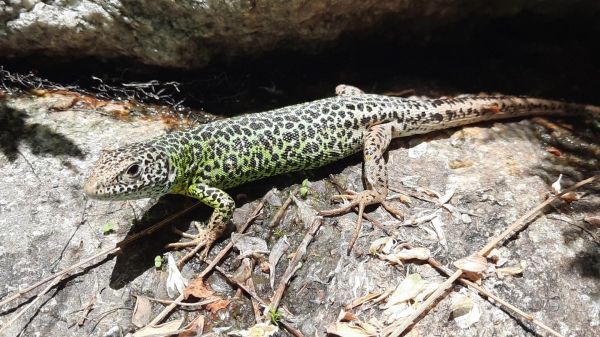Image: Specimen of Iberian emerald lizard (Lacerta schreiberi) in the region of La Vera (Cáceres, Spain). (Credit: Adeline Marcos)
