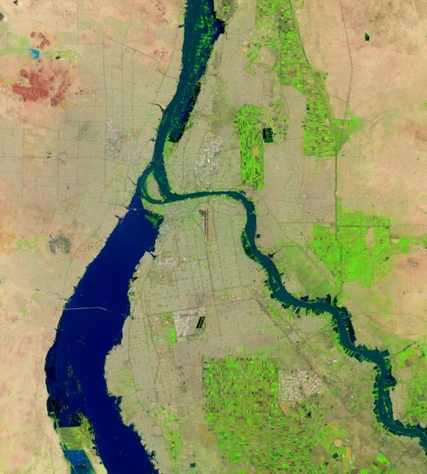 The images above show flooding in Sudan’s capital, Khartoum, on September 2, 2020 (right), compared to a more typical rainy season in September 2016 (left). These false-color images, acquired with the Operational Land Imager (OLI) on the Landsat 8 satellite, use a combination of infrared and visible light (bands 6-5-4) to make it easier to see the boundary between water and land. Water appears navy blue and black; clouds are white or cyan; and vegetation is bright green.