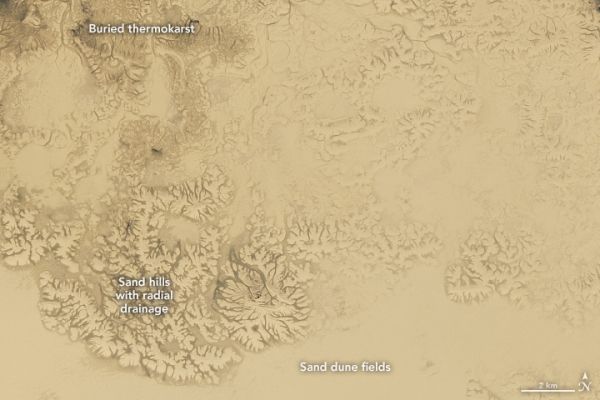 Bunge Land belongs to the Anzhu Islands in the New Siberian Islands archipelago. The 7,000 square kilometer (3,000 square mile) plain is actually a land bridge connecting Kotelny Island and Fadeevsky Island. Some researchers theorize that movements of Earth’s crust caused a patch of seafloor to rise above the water line.