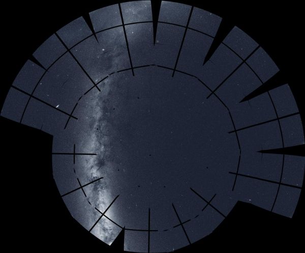 This mosaic of the northern sky incorporates 208 images taken by NASA's Transiting Exoplanet Survey Satellite (TESS) during its second year of science operations, completed in July 2020. The mission split the northern sky into 13 sectors, each of which was imaged for nearly a month by the spacecraft's four cameras. Among the many notable celestial objects visible: the glowing arc and obscuring dust clouds of the Milky Way (left), our home galaxy seen edgewise; the Andromeda galaxy (oval, center left), our nearest large galactic neighbor located 2.5 million light-years away; and the North America Nebula (lower left), part of a stellar factory complex 1,700 light-years away. The prominent dark lines are gaps between the detectors in TESS's camera system. (Photo Credit: NASA/MIT/TESS and Ethan Kruse (USRA))