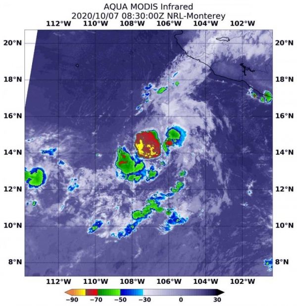 On Oct. 7 at 4:30 a.m. EDT (0830 UTC), the Moderate Resolution Imaging Spectroradiometer or MODIS instrument aboard NASA’s Aqua satellite gathered temperature information about Norbert’s cloud tops. Infrared data provides temperature information, and the strongest thunderstorms that reach high into the atmosphere have the coldest cloud top temperatures.