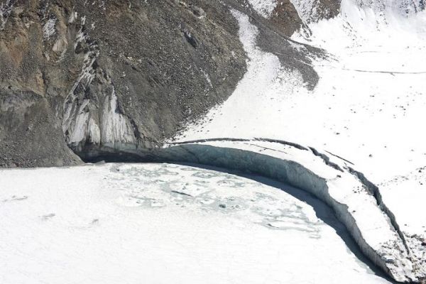 The ice-covered Gya glacier lake shortly after the GLOF event (Photo Credit: Marcus Nüsser)