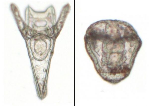Developing sea urchin larvae are affected by chemicals from marine microplastics. Left - not treated. Right - treated. (Photo Credit: Eva Jimenez-Guri)