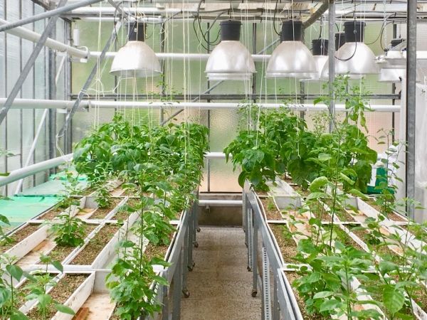 Pepper plants were grown in a greenhouse at the Museo Nacional de Ciencias Naturales (CSIC) in Madrid to investigate how their below-ground behavior differed when planted alone vs. alongside a neighbor. (Photo Credit: Ciro Cabal, Princeton University)