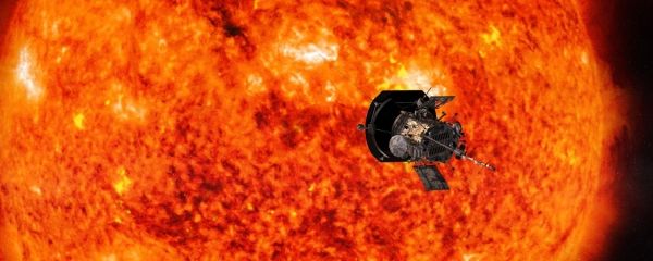 Parker Solar Probe circles in front of the sun in this artist rendering. (Photo Credit: NASA, Johns Hopkins APL, Steve Gribben)