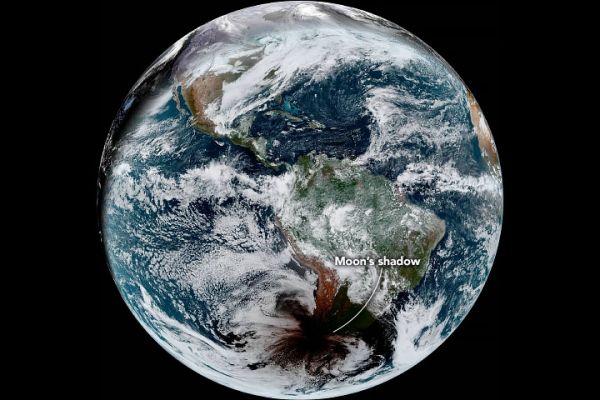 The Advanced Baseline Imager (ABI) on Geostationary Operational Environmental Satellite 16 (GOES-16) captured these images of the shadow of the Moon crossing the face of Earth. GOES-16 is operated by the National Oceanic and Atmospheric Administration (NOAA); NASA helps develop and launch the GOES series of satellites.