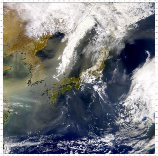 Image: Image of a dust plume leaving China and crossing the Korean Peninsula and Japan. Researchers studied the dust deposited in ancient ocean sediments in order to understand how wind patterns in this area have shifted in the past. Their findings provide a better understanding of how the winds may change in the future. (Credit: SeaWiFS Project, NASA/Goddard Space Flight Center, and ORBIMAGE)