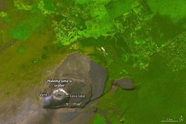 After two years of quiet, Kilauea, Hawaii’s youngest and most active volcano, is erupting again. In the early days of the volcano’s latest eruption, water that had pooled in the volcano’s summit crater (Halema‘uma‘u) since July 2019 was replaced by a lava lake. The water boiled off on December 20, 2020, after the new eruption opened three fissures on the walls of the crater and poured lava into the lake.