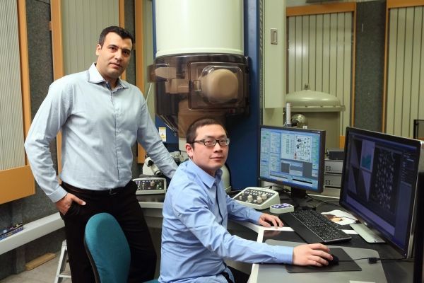 Image: Reza Shahbazian-Yassar, professor of mechanical and industrial engineering at the UIC College of Engineering and Zhennan Huang, a Ph.D. student in Shahbazian-Yassar's lab and co-first author of the paper. (Credit: Photo: Jenny Fontaine/UIC)