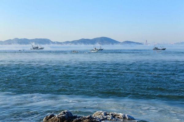 Image: Fishing boats amidst "Arctic sea smoke" near Qingdao, China on January 7th. Arctic sea smoke is a result of frigid air passing over relatively warm water; the phenomenon is rare, even in the Arctic. (Credit: Shaoqing Wang)