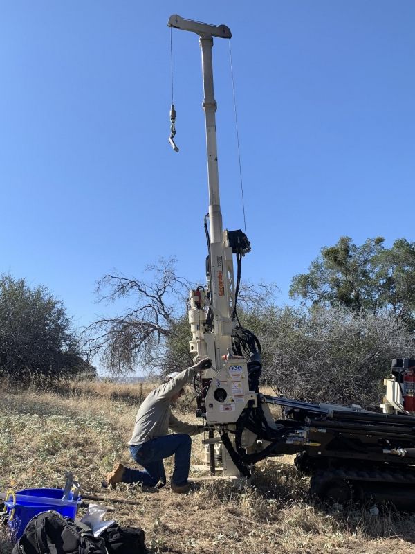 Brad Carr, a University of Wyoming associate research scientist in geology and geophysics, uses a Geoprobe instrument to sample the subsurface in the foothills of the southern Sierra Nevada in California. Carr contributed to a study that was published in the Jan. 12 issue of Geology. The research shows that physical weathering is far more important than previously recognized in the breakdown of rock in mountain landscapes. (Photo Credit: Sarah Granke)