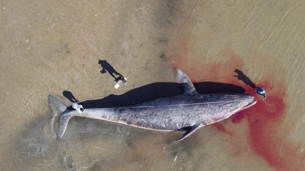 Image: A dead adult female gray whale stranded in Laguna San Ignacio in Mexico on the 17 March 2019. The whale was 12.8m in length. (Credit: Photo: Fabian Rodríguez-González)