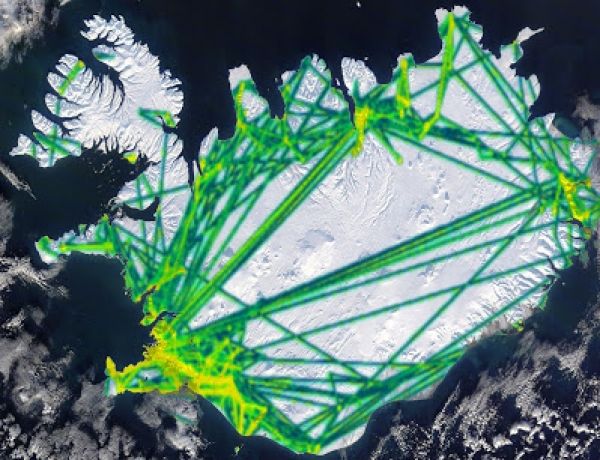 Image: A NASA satellite image of Iceland, superimposed with a heatmap of movement data of individuals during the 2009 H1N1 epidemic, drawn from cell phone metadata near the time they were diagnosed with a flu-like illness. (Graphic by Ymir Vigfusson, Rebecca Mitchell and Leon Danon).
