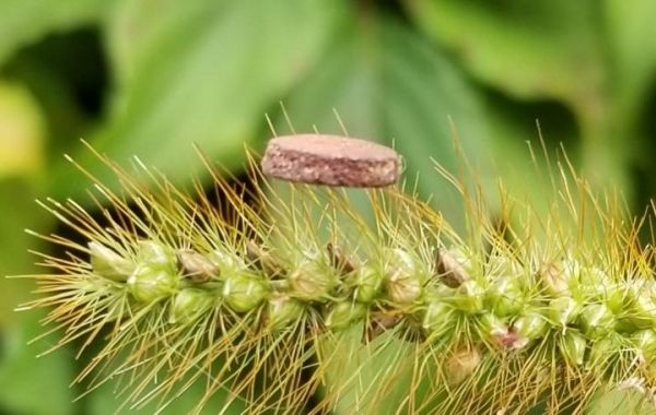 Image: A copper-based foam filter that could someday be used in facemasks or air cleaners sits on the bristles of a plant, illustrating its light-weight nature. (Credit: Adapted from Nano Letters 2021, DOI: 10.1021/acs.nanolett.1c00050)