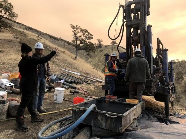 Image: Jackson School Assistant Professor Daniella Rempe directing the drillers on a ridgetop borehole. (Credit: Michelle Pedrazas/ UT Jackson School of Geosciences)