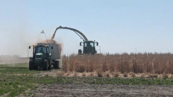 Miscanthus is harvested from a CABBI facility at Iowa State University. CABBI researchers from ISU and the University of Illinois Urbana-Champaign found the biofuel mandates of the Renewable Fuels Standard will lead to significant economic and environmental costs without targeted policies and incentives that value the sustainability benefits of perennial bioenergy crops like miscanthus over cheaper options. (Photo Credit: Center for Advanced Bioenergy and Biofuels Innovation (CABBI))