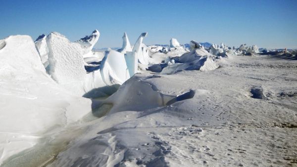 Sea ice pressure ridge off the Antarctic coast. (Photo Credit: Dominic Winski)
