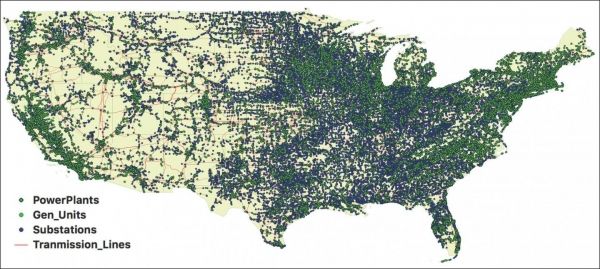 Image: Image created by Dakota Thompson using the electric grid energy resources GIS data from S&P Global Platts. (2017) Platts Energy Map Data Pro. (Credit: Dakota Thompson/Dartmouth)