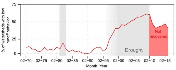 Researchers used statistical models of rainfall and streamflow at 161 water catchments across Victoria, each with over 30 years of data and no upstream dams or water extractions. The area surveyed is about the size of the United Kingdom or half that of the US state of California.