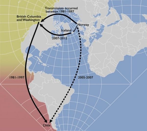 Global transmission map of Piscine orthoreovirus. (Photo Credit: Gideon Mordecai)