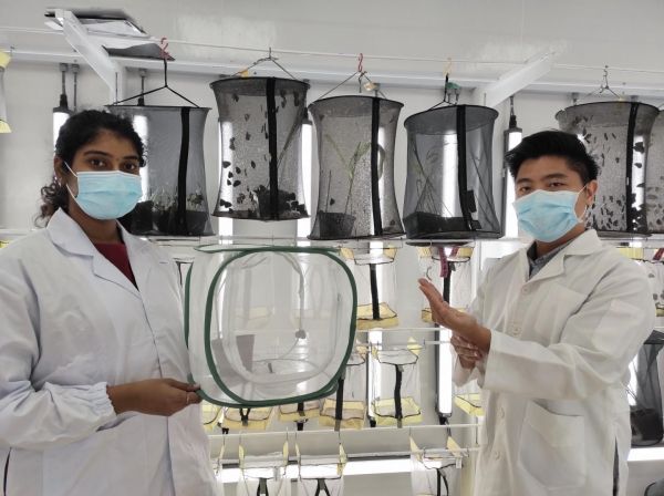 NUS doctoral student Ms V Gowri (left) and Research Fellow Dr Ian Chan (right) are part of the research team led by Professor Antónia Monteiro that observed the eyespots on bush brown butterflies. (Photo Credit: National University of Singapore)