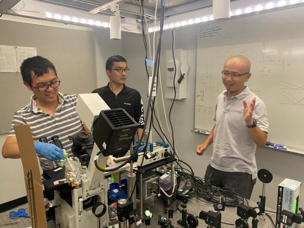 Image: Dr. Rong Ye (left), Dr. Ming Zhao (center), and Dr. Peng Cheng (right) at Cornell discuss their Army-funded research that identifies a new chemistry approach that could remove micropollutants from the environment. (Credit: Cornell University)