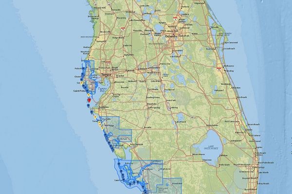 One of three online Gulf of Mexico harmful algal bloom products now available to the public, the respiratory irritation forecast displays conditions at individual beaches over the next 30 hours. It is updated every three hours with any new information and supported by volunteer citizen scientists. Respiratory irritation risk is indicated by the color of the pins: blue (absent or low risk), yellow (low risk), orange (moderate risk), and red (high risk).