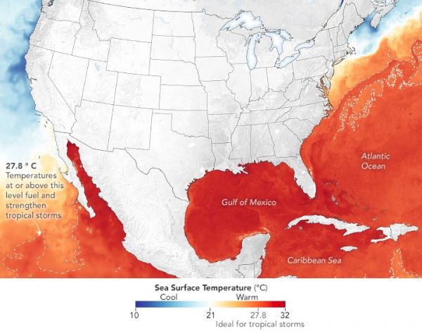 Heading into the peak of hurricane season, the seas around North and Central America are primed to fuel storm development and intensification in the Atlantic and Eastern Pacific. While sea surface temperatures are just one factor influencing the development of hurricanes, they are a fair predictor of the readiness of the ocean to sustain them.