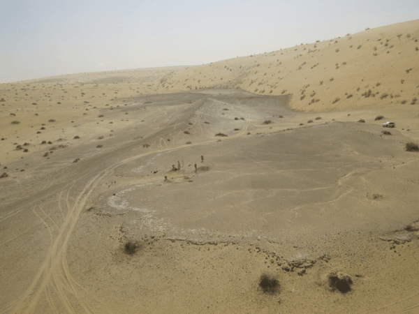 Image: The site of Khall Amayshan 4 in northern Saudi Arabia, where evidence of repeated visits by early humans over the last 400,000 years was found, associated with the remains of ancient lakes (Credit: Palaeodeserts Project (photo by Michael Petraglia))