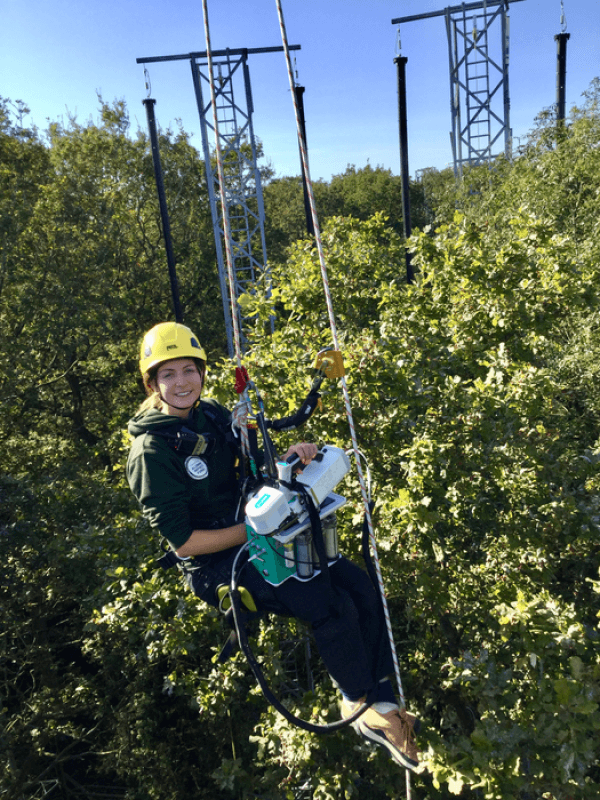 Image: University of Birmingham researcher Anna Gardner taking CO2 measurements in the forest canopy (Credit: University of Birmingham)