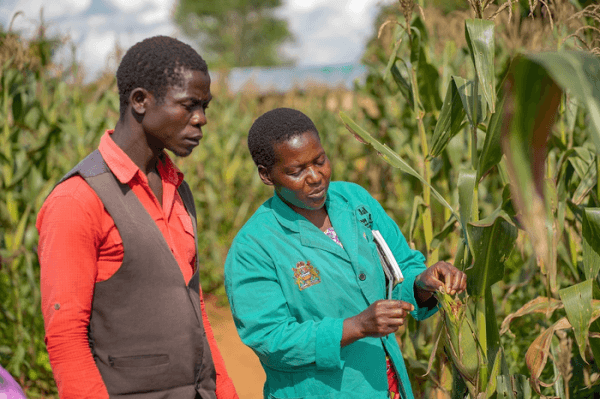 Image: A farmer and extension worker scout for fall armyworm on maize in Malawi. (Credit: CABI)