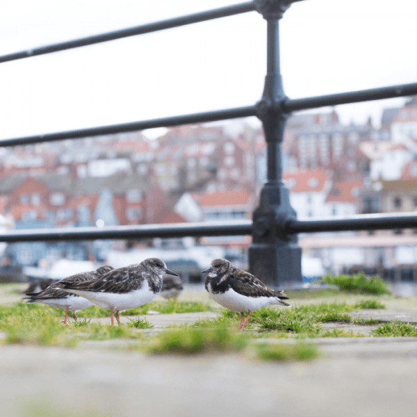 Image: The ruddy turnstone (Arenaria interpres) is a marine wader bird, here pictured on a seashore occupied by human settlement at Whitby, UK. (Credit: Petri Niemelä)