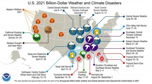 The year 2021 was marked by extremes across the U.S., including exceptional warmth, devastating severe weather and the second-highest number of billion-dollar weather and climate disasters on record.