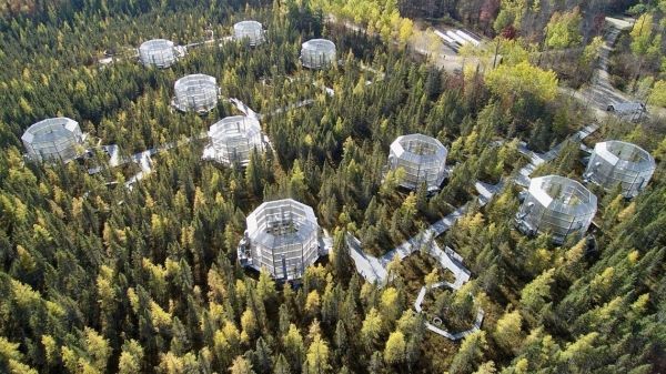 Image: The Marcell Experimental Forest in northern Minnesota. Scientists are simulating different climates in these glass chambers to better understand how boreal forests will respond to rising temperatures. (Credit: OAK RIDGE NATIONAL LABORATORY / U.S. DEPARTMENT OF ENERGY)