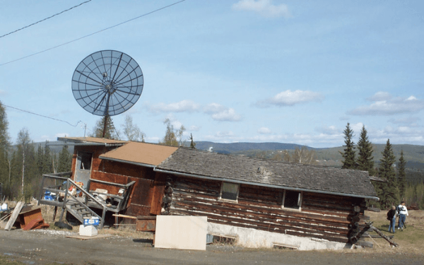 Image: A private house north of Fairbanks is unevenly sinking into thawing ice-rich permafrost. (Credit: Vladimir Romanovsky)