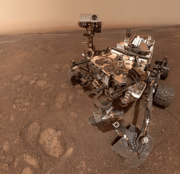 Image: A selfie taken by NASA's Curiosity Mars rover on Sol 2291 at the "Rock Hall" drill site, located on Vera Rubin Ridge. Reduced carbon released from powder from this drill hole was strongly depleted in carbon 13, the surprising carbon isotopic signature reported by the team. The selfie is composed of 57 individual images taken by the rover's Mars Hand Lens Imager (MAHLI), a camera on the end of the rover's robotic arm. (Credit: NASA/Caltech-JPL/MSSS)