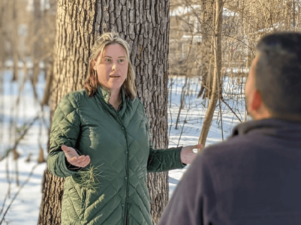 Image: Forest landowner interest and participation in carbon-offset projects remains a major, unresolved bottleneck requiring much-needed change, according to lead researcher Melissa Kreye, assistant professor of forest resource management (shown here). The Penn State-led program is intended to address that situation using an integrated, stakeholder-driven approach to developing and expanding extension activities that lead to the adoption of practical solutions and durable change. (Credit: Jesse Kreye/Penn State)