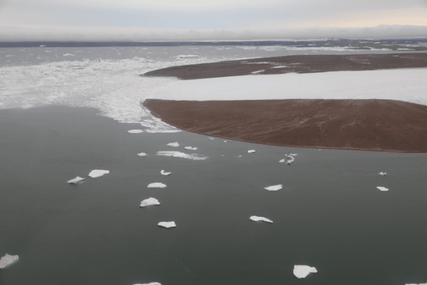 Melting ice on the islands of Severnaya Zemlya (Barents and Laptev Sea region). (Photo Credit: Gabriela Schaepman-Strub, Arctic Century Expedition, 2021)