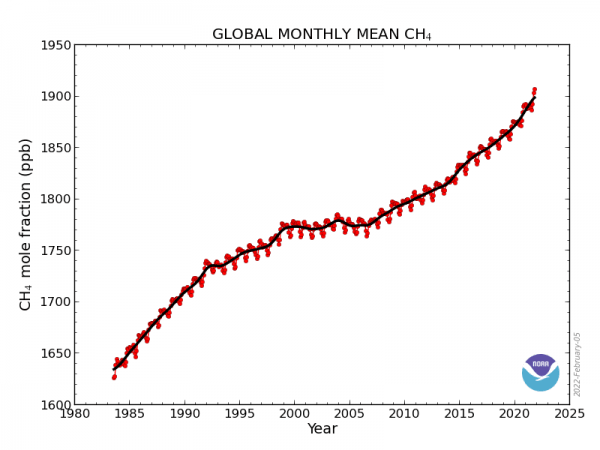 Last year, atmospheric methane levels reached a grim new milestone, surpassing 1,900 parts per billion, the highest level in almost 40 years of record-keeping, according to new data from the National Oceanic and Atmospheric Administration.