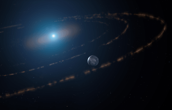 A ring of planetary debris studded with moon-sized structures has been observed orbiting close to a white dwarf star, hinting at a nearby planet in the “habitable zone” where water and life could exist, according to a new study led by UCL researchers.