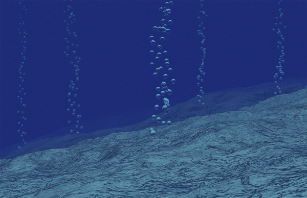 Methane gas bubbles rising from the ocean floor (Photo Credit: Justin Kim)